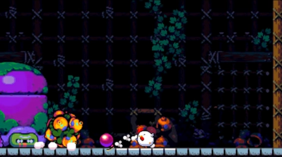 第二种BOSS会吐出一颗黄色球体径直朝我们滚来,此时我们只需反向推出一颗炸弹,让它和BOSS的黄球对撞并将其炸毁就行,和之前一样,BOSS在吐球前会有一个准备动作。