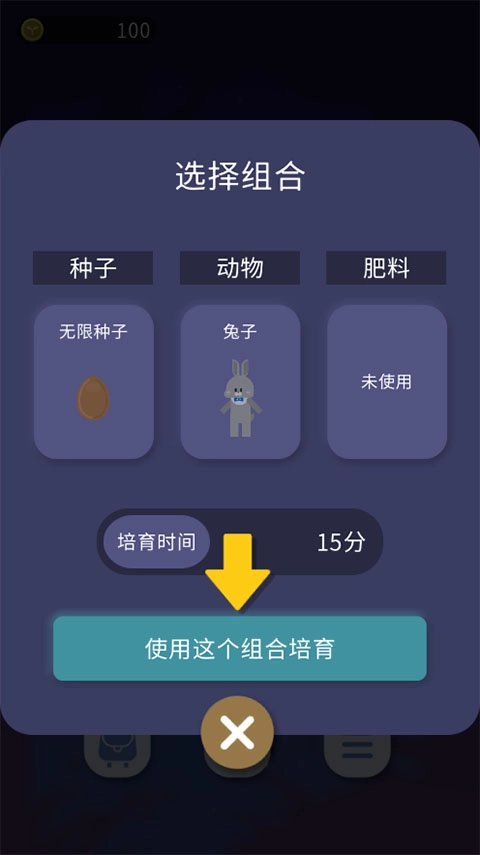 4、玩家种植种子时,需要挑选动物来培育,不同的动物与种子搭配,会种出不一样的植物。