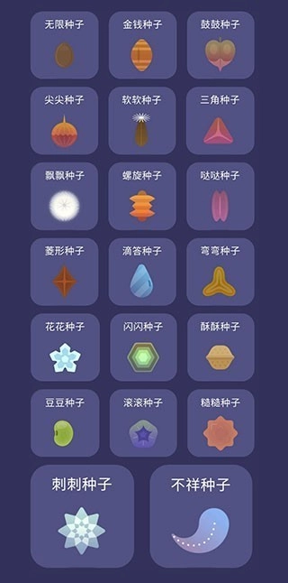 3、每颗种子都有属于自己的名字,下图为玩家提供了这些种子的名称信息。