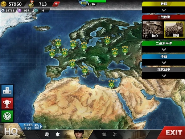 冠军杯任务是获取勋章(也就是显示为713的那个道具)的较划算方式之一,不过最快的途径依然是氪金。任务类型包含战役挑战,比如通关二战欧洲所有困难剧本、现代战争剧本等;还有征服挑战,例如使用2星国家完成特定年代的征服剧本。整体来看任务内容十分丰富,而且难度越高,能得到的勋章数量就越多。