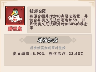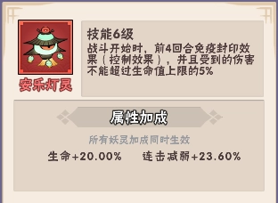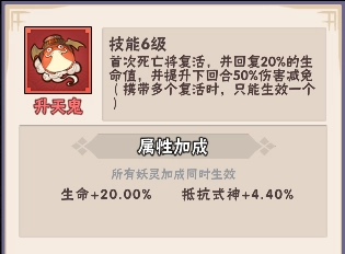 升天鬼的技能十分强大,不仅能复活,还能恢复13%的生命值;安乐灯灵在前4回合具备免疫封印的效果,若遭受伤害,最高也不会超过10%;腾云鬼则可以为角色提升18%的暴击率。