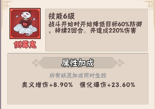 干净鬼是很多玩家必带的一只,因为每回合都有30%的几率净化,非常克制挂负面效果的敌人,并且如果净化了还能对敌人造成200攻击力加成的伤害,倒霉鬼也是个辅助,可以降低敌人40%的防御,对于玩家的伤害输出有很大的提升。