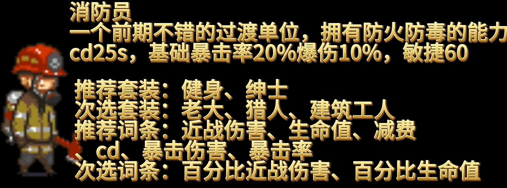 建筑师:配备防弹衣,是前期唯一的防弹单位,打第三大关推荐使用