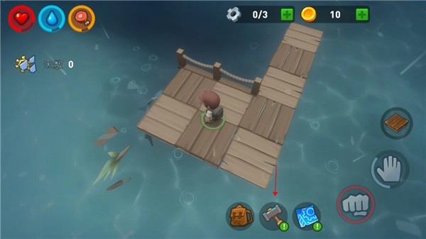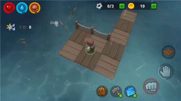 游戏的核心玩法围绕着木筏逃生展开,你需要巧妙地利用斧头、锤子等工具,建造和扩展你的木筏。