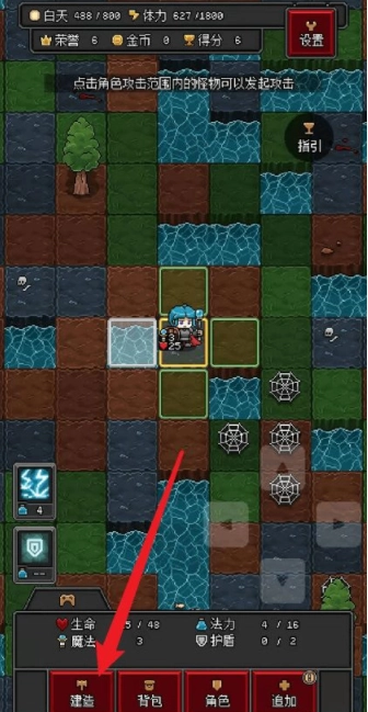 2、地图打开后,先刷蜘蛛,同时顺路收集铁矿这类资源,凑够建一座箭塔的材料;建好后就带着箭塔继续刷蜘蛛。大概刷100个boss能攒齐32枚神秘硬币,用来解锁生存天赋优惠券(现在爆率说不定更高些),这是开局一定要做的准备。