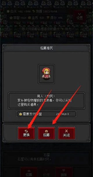 3、接着,点击底部的“更换”,当找到商人后,点击“招募”即可,如图下所示。