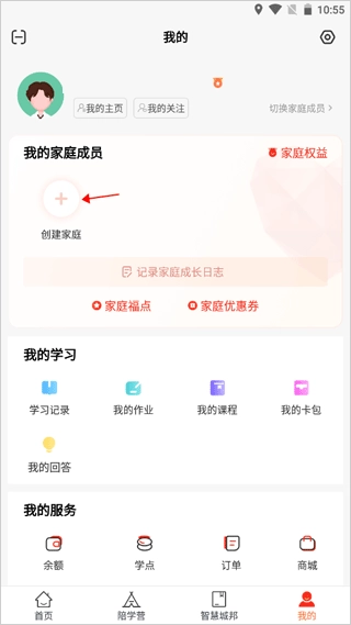 进入“我的"界面,点击“组建家庭"按钮,点击“立即创建”即可。