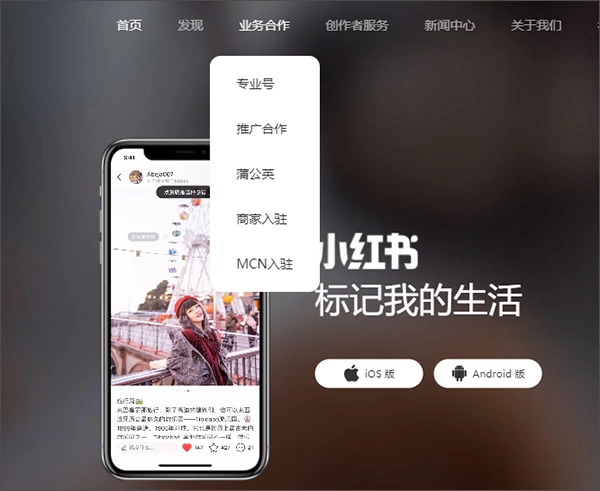 2、在小红书网站点击招商合作,点击进入;