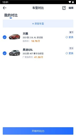 4、在弹出的窗口中,添加需要对比的车型,具体可参照下图。