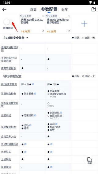2、接着在已打开的界面中,点击开启【车型对比】这一选项。