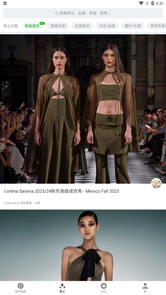 2、在笔记功能栏里,软件向用户提供了关于高级成衣、高级定制、巡游系列等方面的笔记。