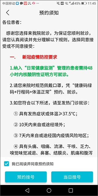 2. 先查看预约须知,再依据个人时间规划,决定选择当日挂号还是预约挂号。
