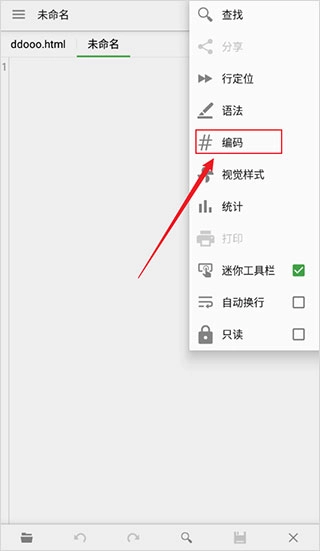 2、然后再下拉中,找到并点击编码;