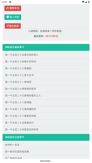 3、点进去一个小说链接,里面有很多的章节,这里点击加入书架是加入不了的