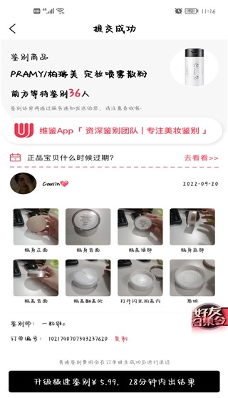 8、接下来就可以等待鉴别结果了,如果想快速知道可以化六块钱点击升级极速鉴别。