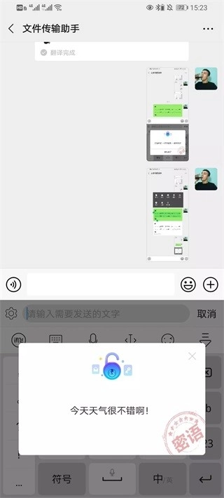 3、复制好密语后,我们只需要再次点击输入框,打开输入框讯飞输入法即可自动帮助我们进行解密(密语模式必须打开)。