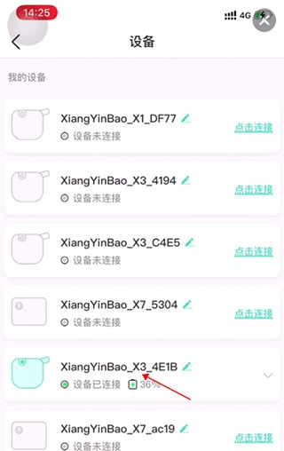 3、完成登录后,点击右上角的设备连接选项。