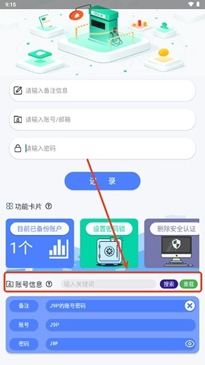 2.一键开启手机密码箱,在这里可以记录你的每一个账号密码