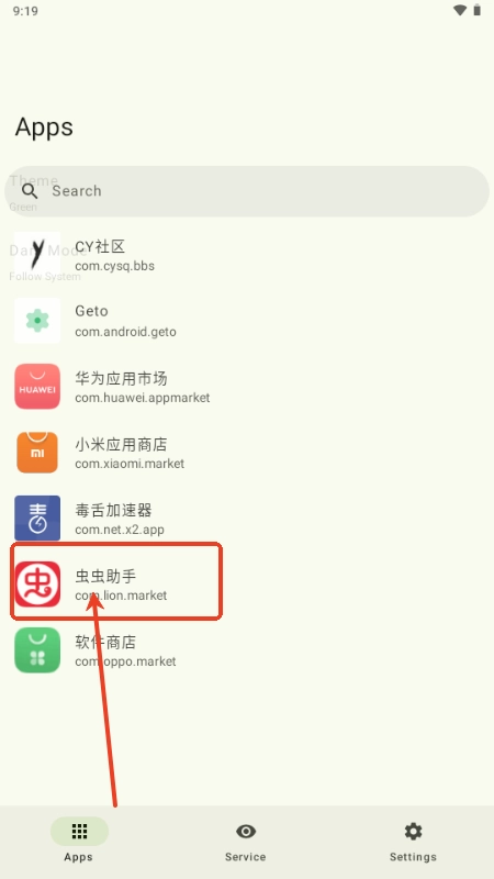 2. 进入软件后,选择需要打开开发者选项的软件,在此以虫虫助手为例。