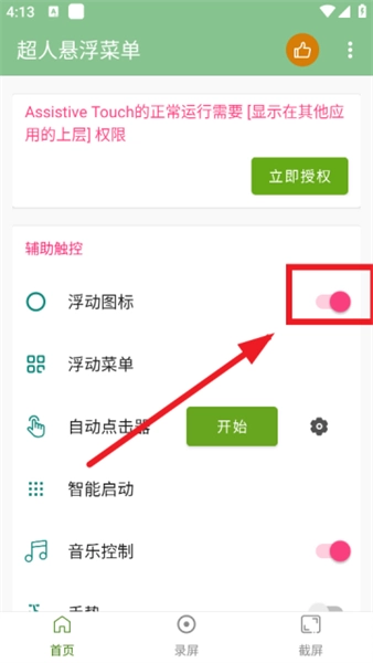 3. 完成设置后,返回主界面,开启悬浮菜单功能,即可开始使用。