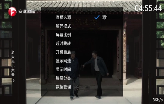 2、紧接着,我们能够看到直播选源、超时跳转、显示网速等诸多功能。