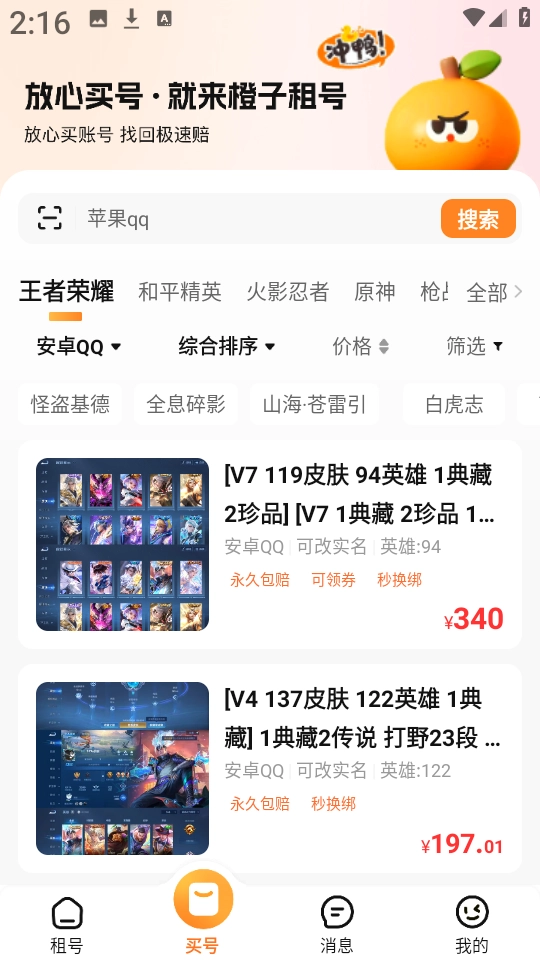 橙子租号,让用户能轻松在线租赁游戏账号。平台汇聚全网热门端游账号信息,满足各类用户的租号需求。在这里,你可放心在线挑选账号,轻松查找心仪账号。同时,平台还提供超多优惠信息,让用户安心在线租号,尽情体验大神账号带来的游戏乐趣。