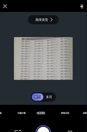 3、拍摄完成后,点击【题库类型】,即可查看本次识别涵盖的题型范围与批改详情。