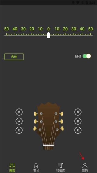 1、打开软件并进入主界面,在这里可以手动或自动地调节音调,选择下方菜单栏【我的】。