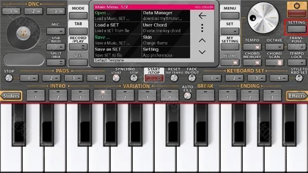 1、当在本站完成安装并进入首页界面时,用户会留意到ORG 24电子琴显示的仍是全英文状态,此时需点击界面上的设置。