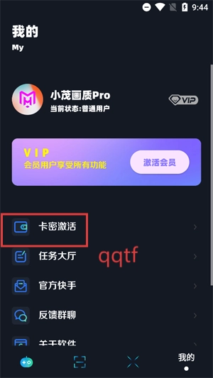 打开你的小茂画质Pro,在个人中心点击卡密激活。