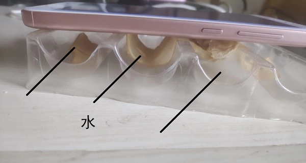 方案二(零成本):找个口服液或类似的胶架,按下图,先用纸巾将所有凹槽连起来,再用另一张直接贴手机背面,药瓶的槽灌水,如此水量大,且有热传递循环,加个风扇效果更佳。