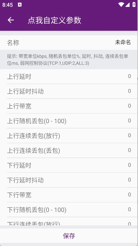 4、完成选择后,进行弱网参数的设置。