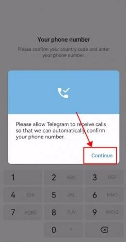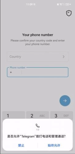 打开 Telegram 应用程序并输入您的手机号码。
