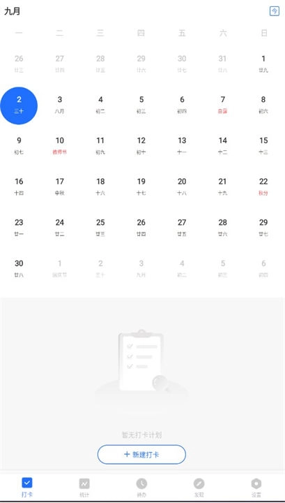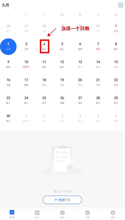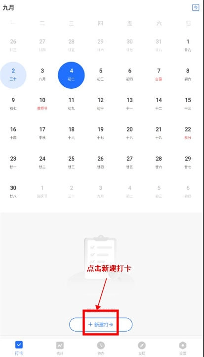 3、紧接着点击“新建打卡”。