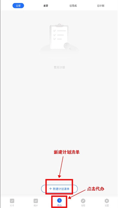 5、此外,用户也可以选择下方的“代办”,新建计划清单。