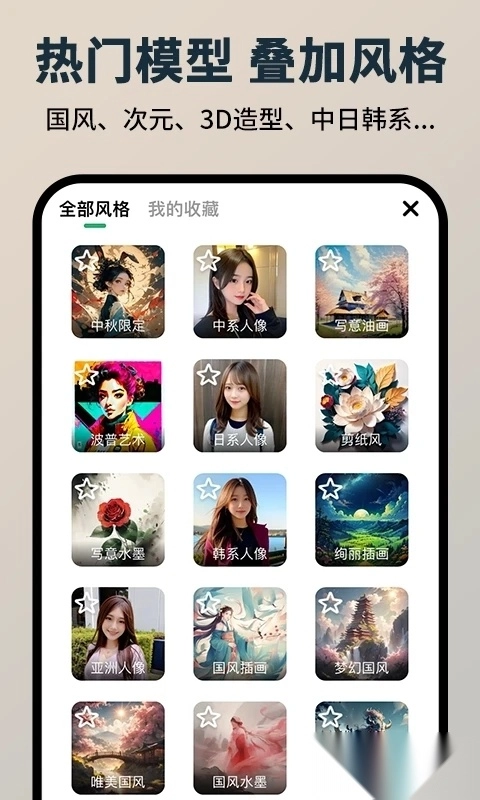 博朋克看、梵高、水墨画、油画、CG渲染、数字绘画、插画、水彩画、新海诚、壁纸,十几种特征鲜明、氛围浓厚的艺术风格供你选择。