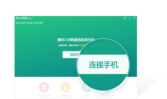 请使用USB数据线,把您的手机与电脑相连,随后点击“一键ROOT”按钮。
