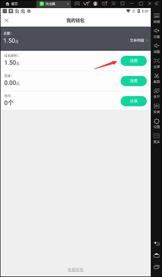 2、进入我的界面后,找到红包消费界面并直接进入。