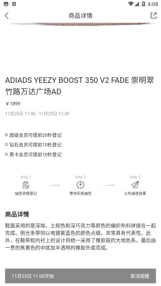 3、打造了更为贴心化的抢购提醒功能,让你不错过你喜欢的鞋子。