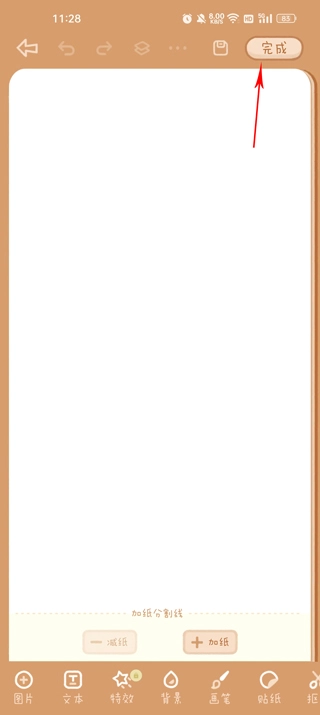 6、可选择添加图片、背景图片、文本、贴图等元素,操作完成后点击右上角的“完成”按钮,最终还能将内容分享至QQ、微信、空间等主流社交平台。