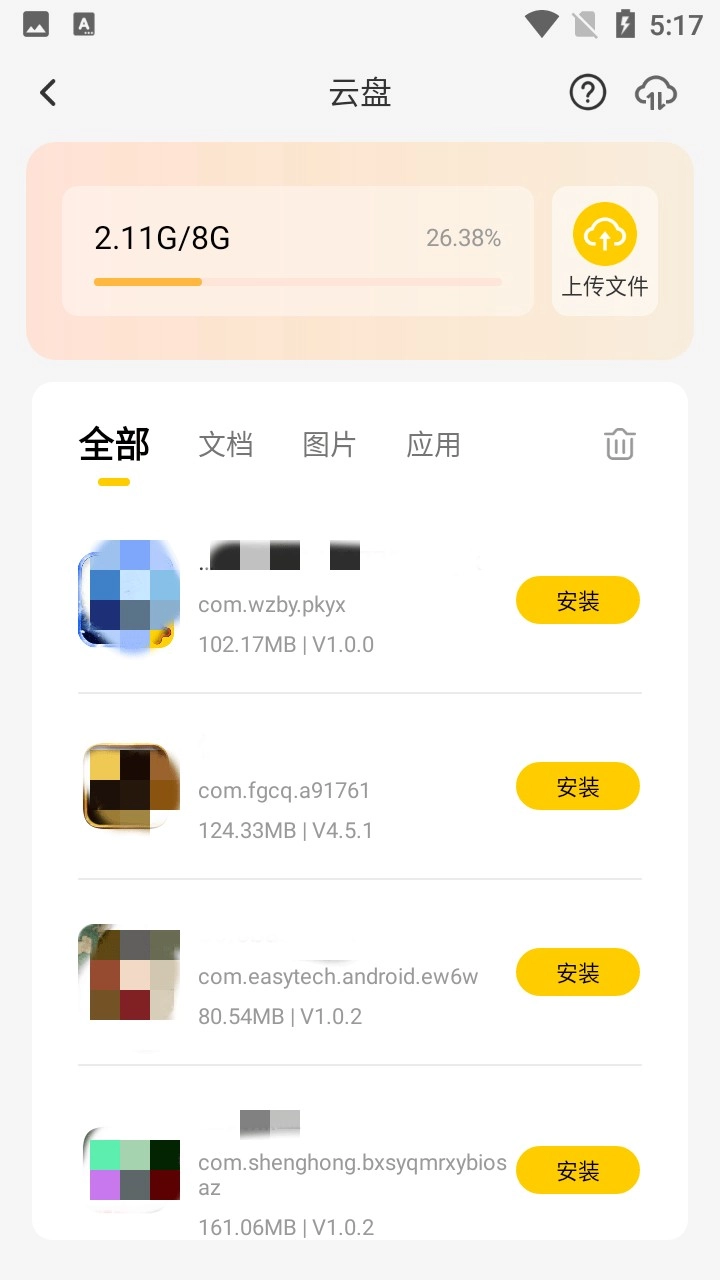 2、添加设备完成以后就可以上传软件了,自己需要运行哪些软件就先把其到手机上面,然后通过上传将软件安装到自己的云手机里面。