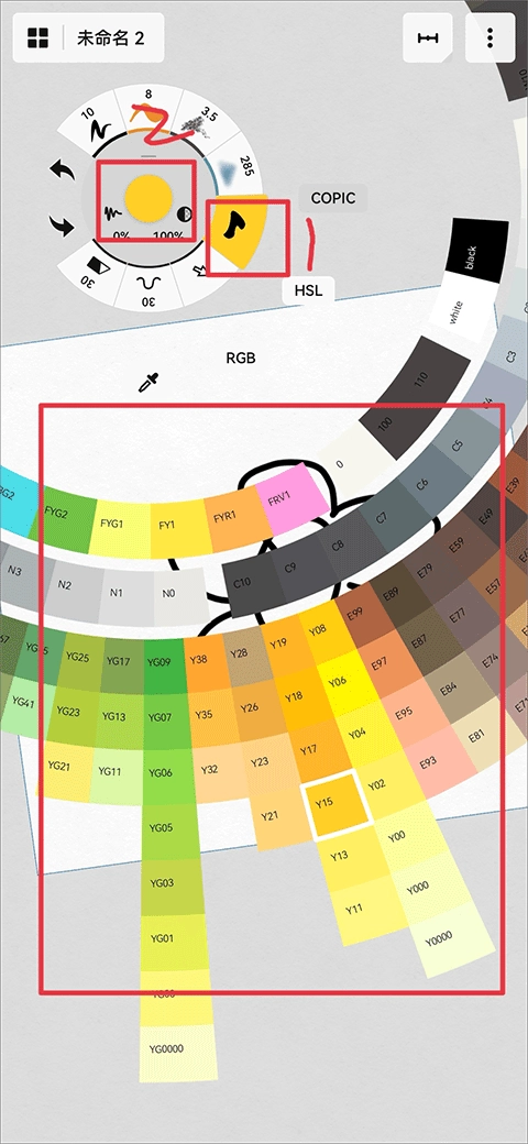 • 完整的COPIC色谱轮 + RGB和HSL色轮