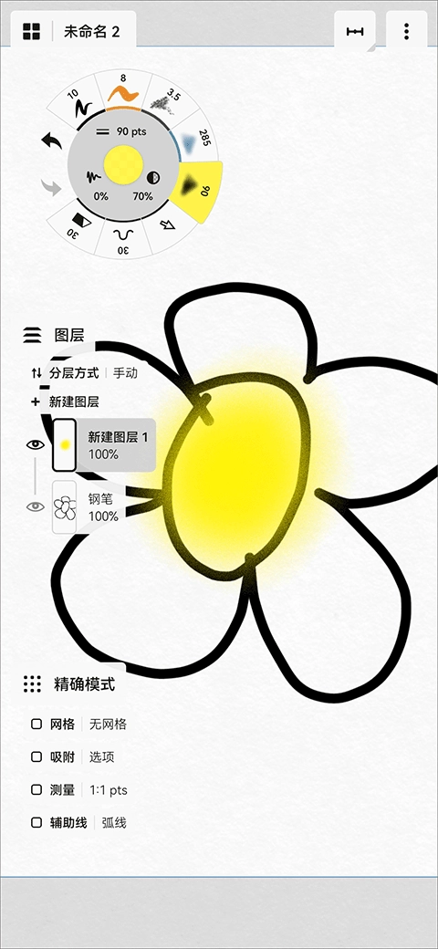 用户在使用感压笔画画时,手指可能会意外触碰到画板,进而触发手指相关的操作。要是觉得这种情况有影响,也可以选择关闭该功能,具体操作是先点击界面右上角的三点图标。