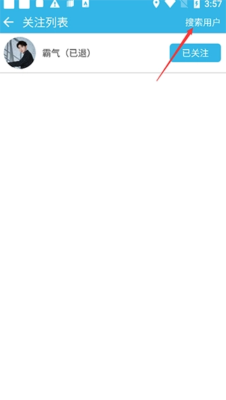 3、接下来在右上角就能找到“搜索用户”的功能,点击进入该功能页面。