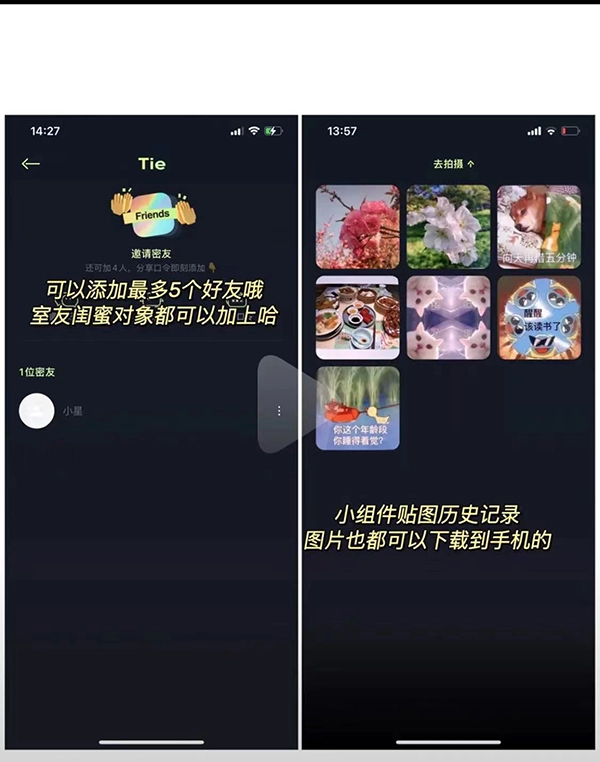 3、贴贴功能最多能添加5个好友,之前贴过的历史屏幕照片也支持查看哦