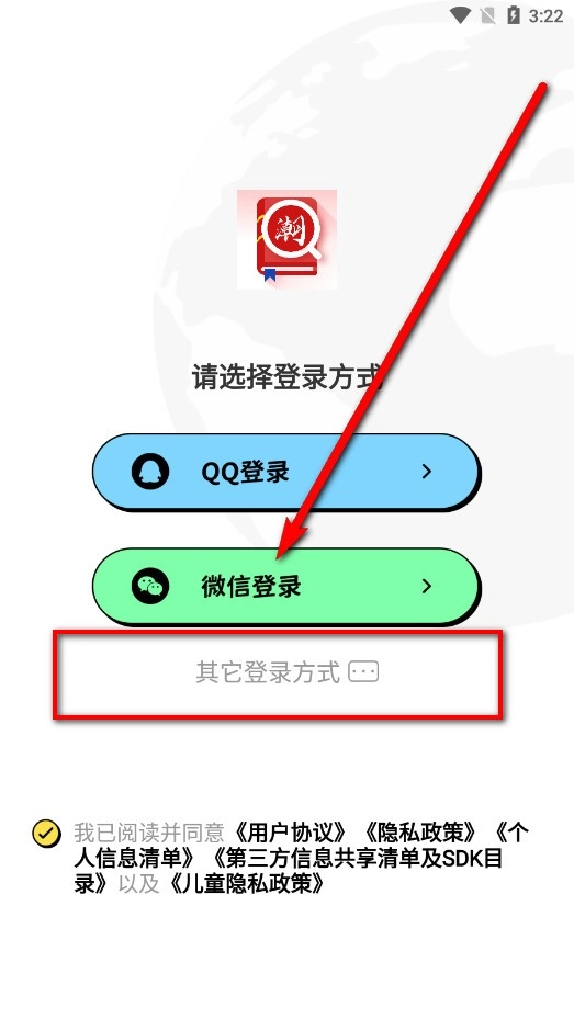 1、选择QQ、微信等登录方式,或者点击【其它登录方式】。