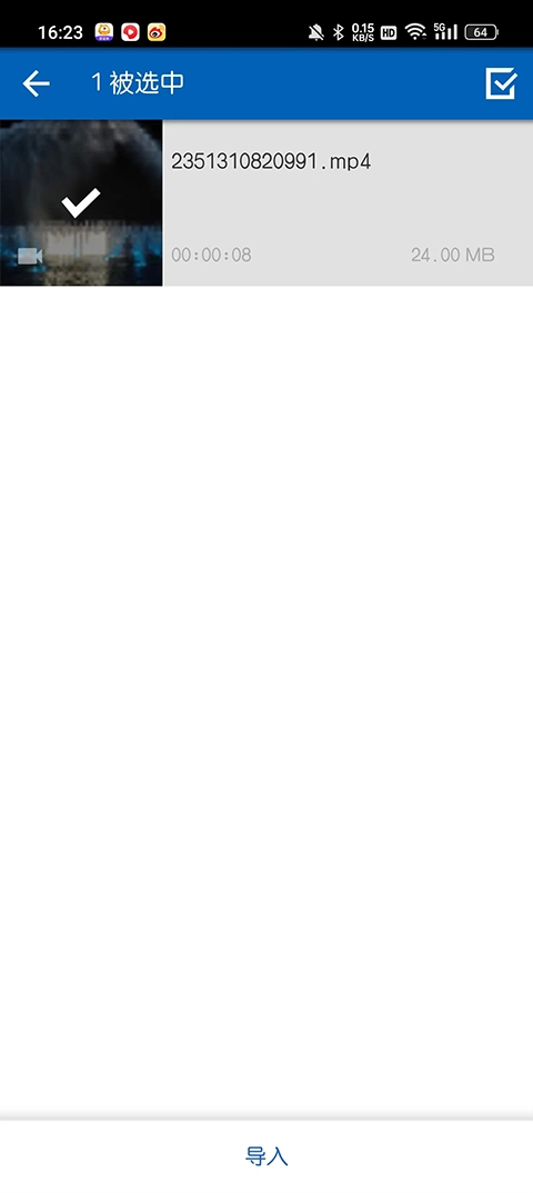 3、点击右上角选中之后直接导入即可。