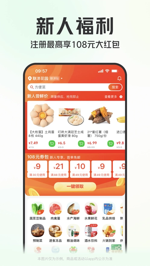 新用户注册可享最高108元新人礼包,首次下单免配送费,且支持零元起送,不妨来体验一下?