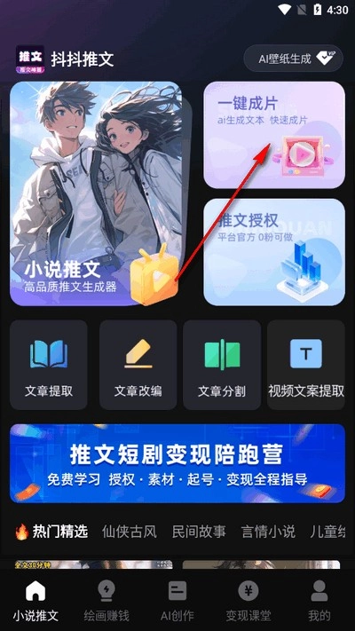 抖抖推文是一款融合了AI漫画推文解说视频生成、AI绘画与变现课堂的多功能创新应用,为用户打造从内容创作到变现的全流程服务方案,业务范围涵盖本地生活、小说推文、影视短剧、电商带货、小程序、在线教育等多个领域。