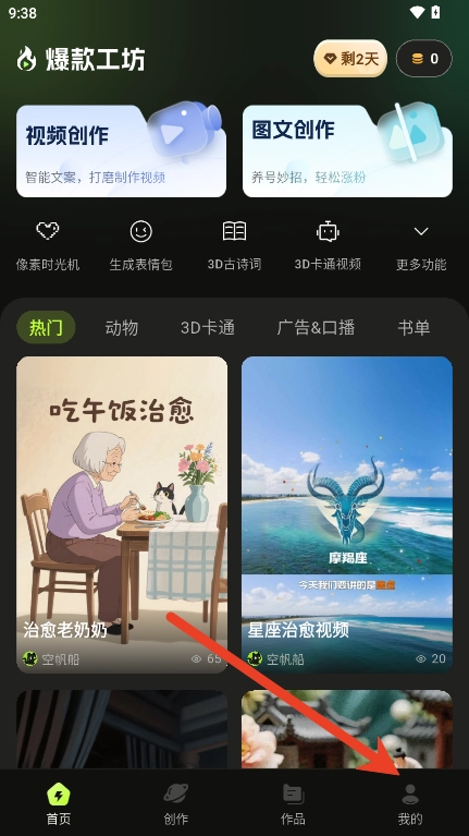 1、首页提供了视频创作、图文创作、像素时光机、生成表情包、3D古诗词等功能的体验入口。